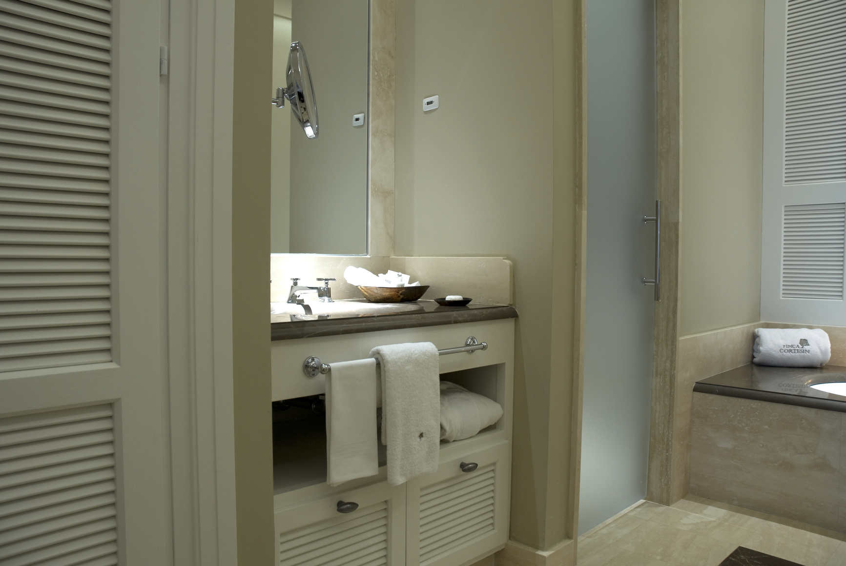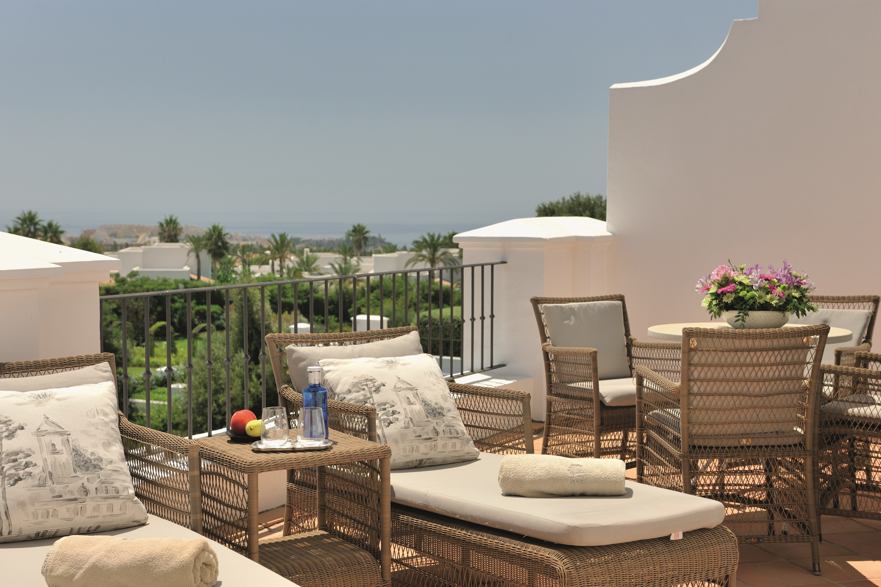 Las suites están inundadas de luz natural y han sido diseñadas de manera elegante e individual, con detalles cuidadosamente pensados en todo el espacio. Los baños están acabados en mármol italiano travertino, con bañeras extragrandes, duchas tipo “walk-in” con efecto lluvia, doble lavabo y WC separado.