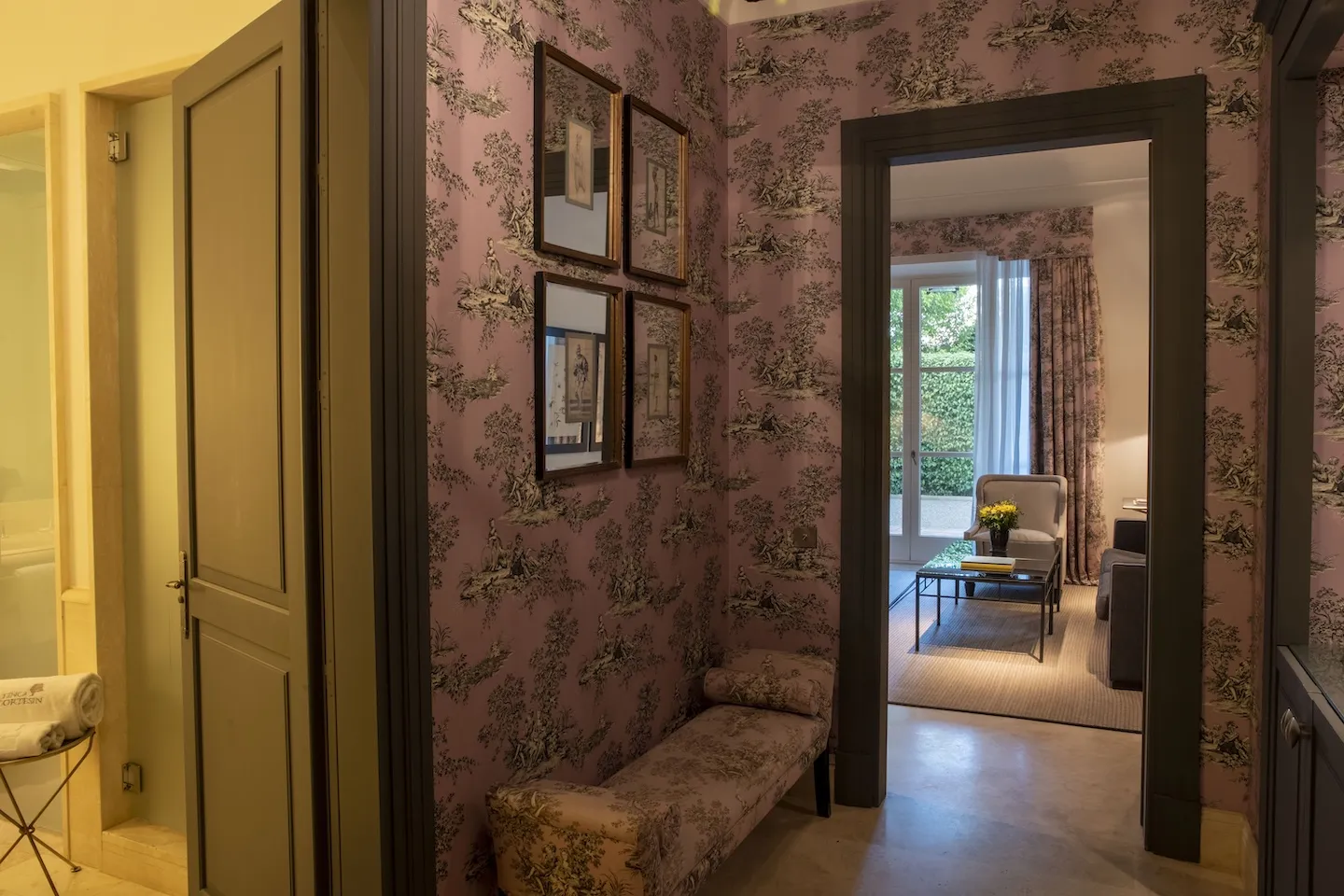 77 sqm (830 sqft) of elegant interiors with sweeping 4 m (13 ft) high ceilings and a separate lounge. The bathroom is finished in marble and includes a bathtub, walk-in rain shower, double vanities, and a separate WC. The suite features a Juliet balcony, private terraces and serene Mediterranean views.